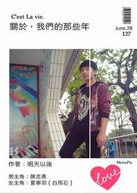 人说,那是风华正茂的年头。 得到亦或失去,安分却太过喧嚣。 不够成熟的我们翻滚着所谓朝夕, 而后,遗留在生命裏的足迹,倒映下天际。 不过冬季。路灯投射在妳盈盈笑语,阴雨沾湿了水泥地。 「别人的青春太过戏剧化,即便置身事外也让人吃不消。」 「我身边站了一群太过不平凡的人类,也包含你啊。」 不过想闲聊会,却收到意外的答覆。 高一的六月,做了这幺个决定,与妳同行的道路。 于是物换星移,何谓对错。 经历过最跌宕的故事;最后,有个人静静陪着自个。 她的笑容稚气未减,一如初见。 无论十年、二十年,依然是旧时模样。 书封为婩婩赠送,图来源网路,侵权即撤。 更新时间主要是週四晚间,大概一个星期吧,然后其他时间指不定也会更新。 大修了。此文并不在除POPO以外的地方连载。 ?